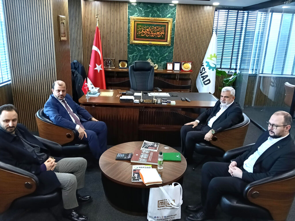 MİLAD İş Dünyası Derneği Genel Başkanı Hüseyin Terzi ve beraberindeki heyet, HAKSİAD Genel Merkezi’ni ziyaret ederek iki kurum arasında yapılabilecek sektörel iş birlikleri hakkında fikir alışverişinde bulundu.